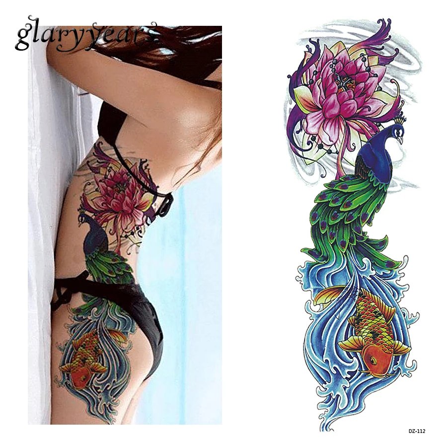 صور من 1 قطعة الوشم ملصق كامل زهرة الذراع الأسماك الطاووس لوتس نمط المؤقتة ماكياج الجسم الفن نقل المياه ملصقا الوشم DZ-112