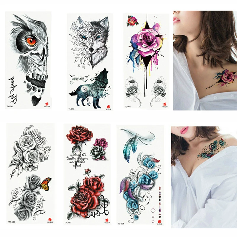 المنتجات ذات الصلة ل Body Art و 1 ورقة الجمال صائق للماء الوشم ملصق لطيف الملونة زهرة الذئب نمط النساء فتاة الجسم الفن المؤقتة الوشم القابل للإزالة