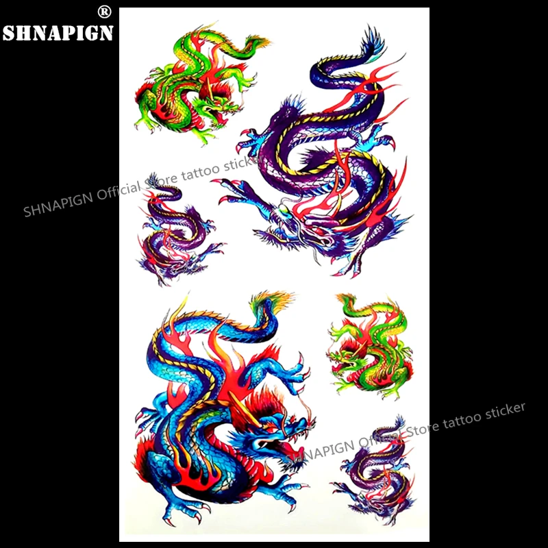 أرغب في شراءمعلومات اضافية Shnapign اللون الصينية التنين الوشم المؤقت هيئة الفن الذراع فلاش الوشم ملصقات 17*10 سنتيمتر للماء وهمية الحناء مؤلمة ملصقا