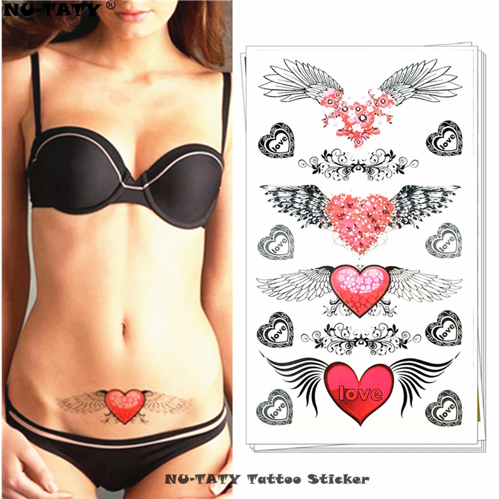 معرض من نو-TATY الملاك أجنحة الحب القلب المؤقتة الوشم هيئة الفن الذراع فلاش الوشم ملصقات 17*10 سنتيمتر للماء الحناء ألم