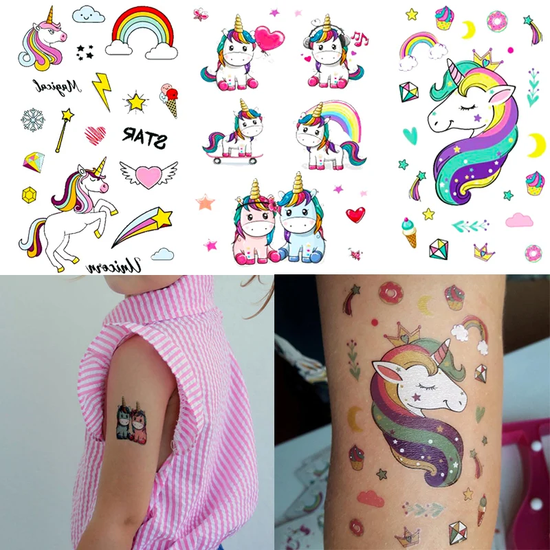 المنتجات ذات الصلة ل Body Art و WEIGAO الكرتون يونيكورن لصاقات وشم لطيف الاطفال وهمية الأطفال Tatouage Temporaire الجسم الفن للماء المؤقتة الوشم ملصق